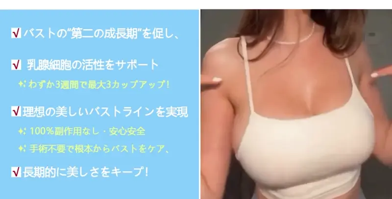 昔からずっとAカップで、夏にタンクトップを着ると、胸のラインがまったく出なくて平らだったんです…でも、栄養士さんに出会ってから、今は本当に変わったんです! 以前みたいに恥ずかしい思いをすることもなくなりました〜